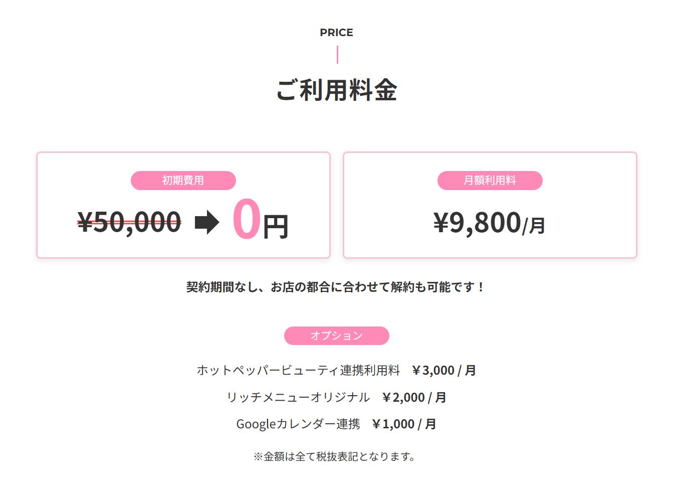 | 月額費用 | 9,800円 |
